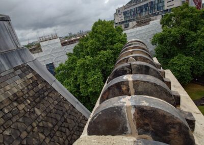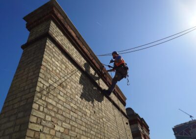 As works progressed, the scope expanded to include façade snagging, mastic application, repointing and condition surveys of architectural elements.